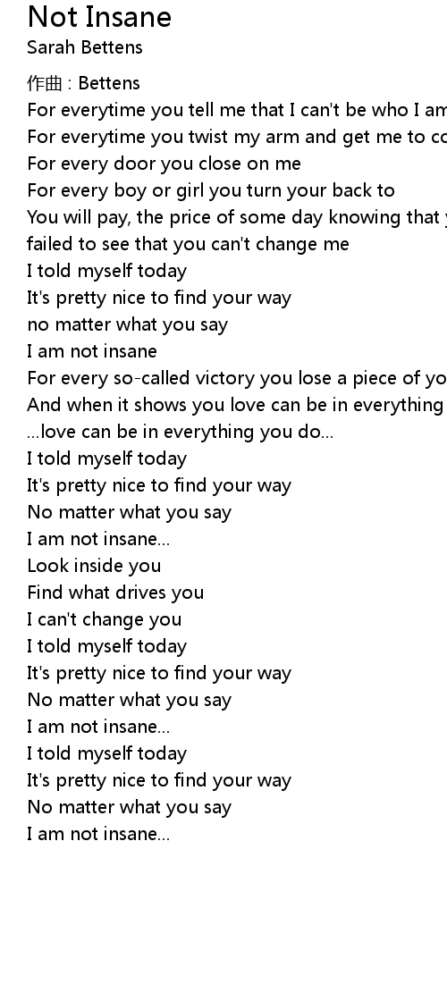 | 歌曲 | Not Insane |