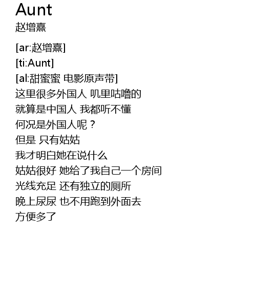 | [00:18.560] | gū gū hěn hǎo tā gěi le wǒ zì jǐ yí gè fáng jiān |