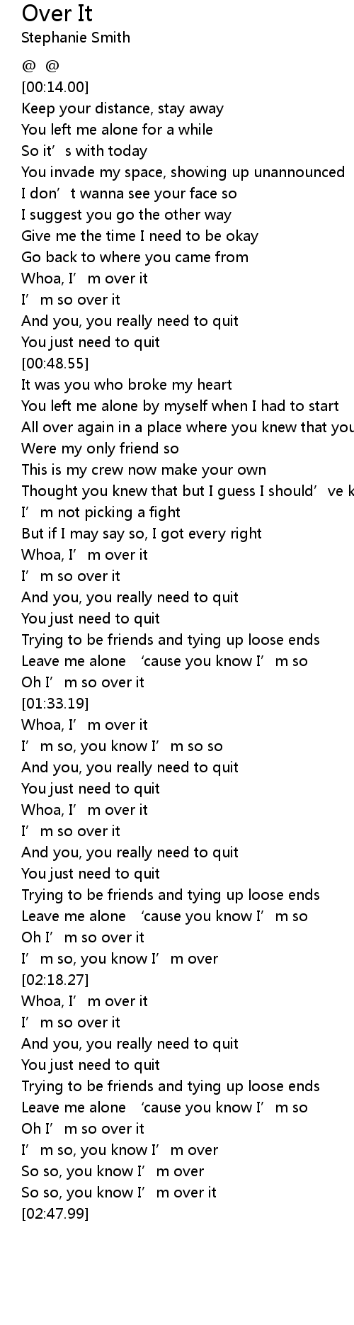 | [00:38.55] | Whoa, I' m over it |