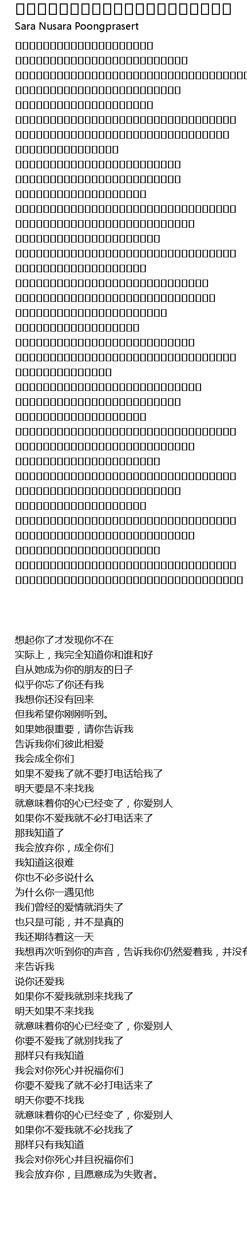 | [00:19.474] | นึกแล้วว่าเธอไม่อยู่ |
