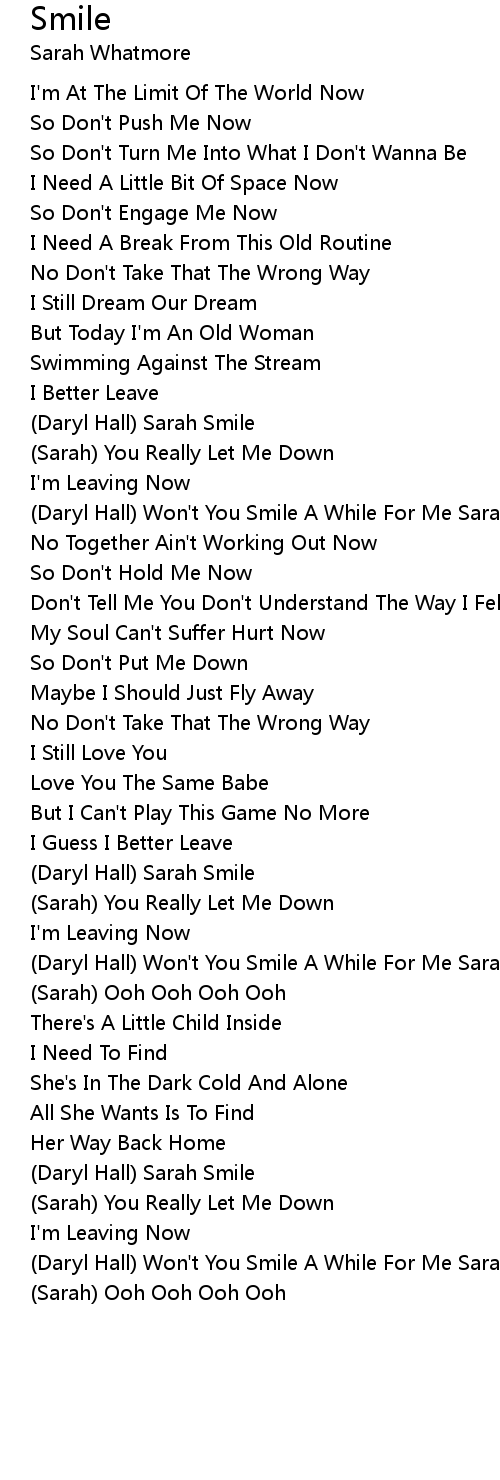 (Daryl Hall) Won't You Smile A While For Me Sarah |