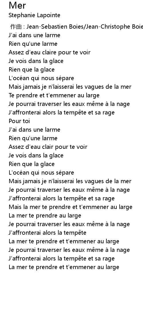 | [02:47.90] | La mer te prendre au large |