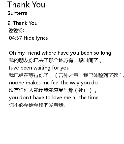 | wo yi jing zai deng dai ni le, yan wai zhi yi: wo yi ti yan dao le si wang. | |