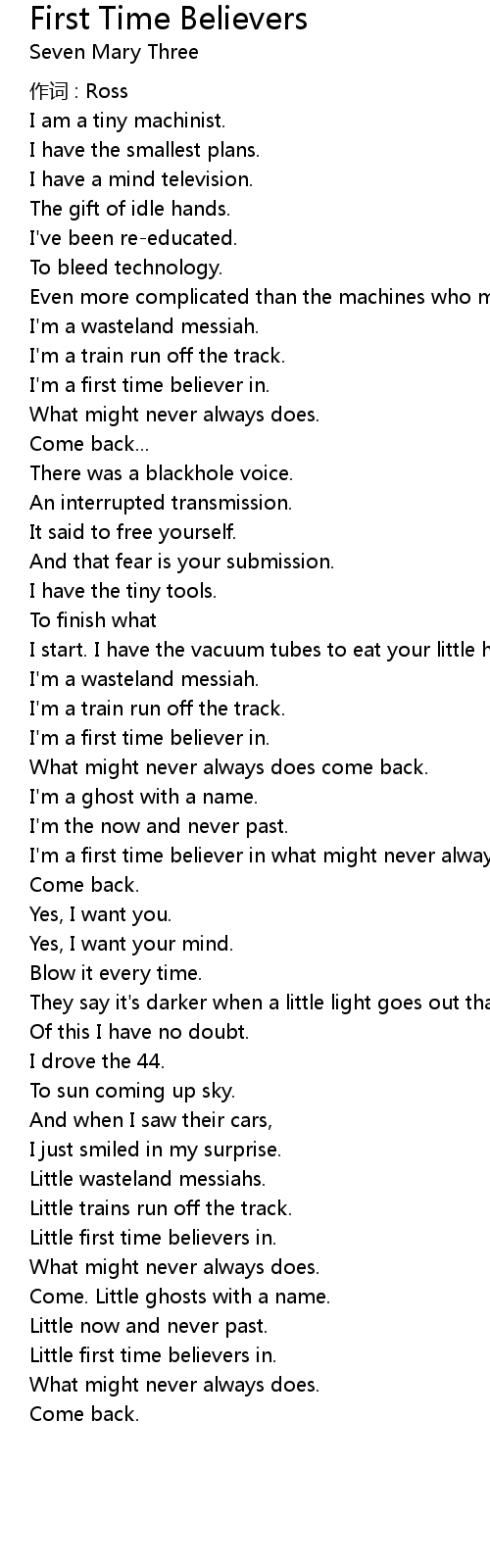 | 歌曲 | First Time Believers |