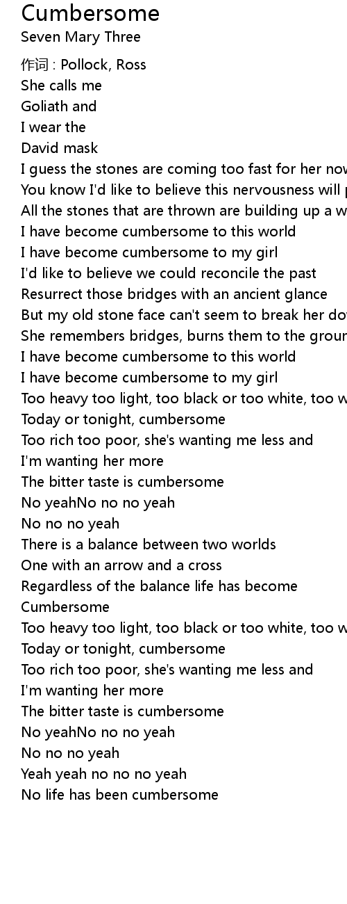 | 歌曲 | Cumbersome |
