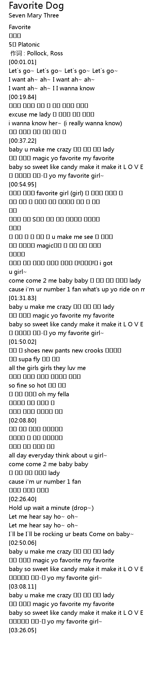 | [01:32.56] | baby u make me crazy 내게 내게 와줘 lady |