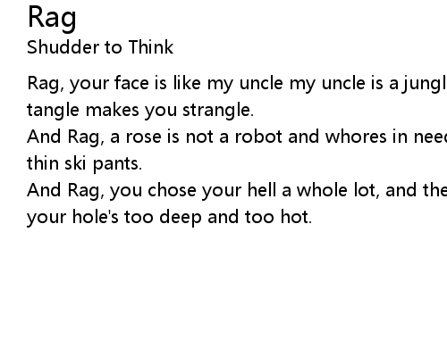 | Rag, your face is like my uncle my uncle is a jungle a jungle is a tangle a tangle makes you strangle. | |