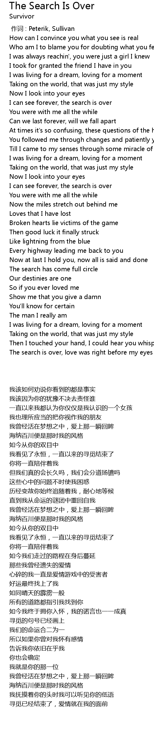 | 歌曲 | The Search Is Over |