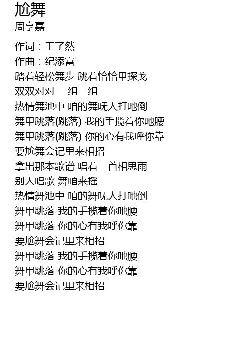| 舞甲跳落 我的手揽着你吔腰 | |