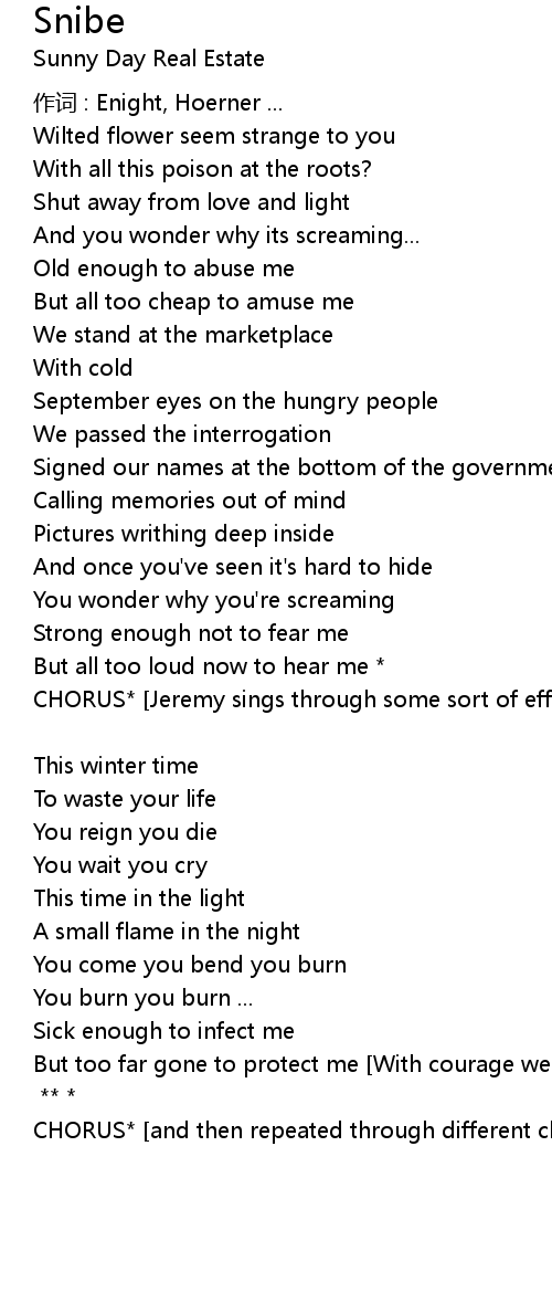 | CHORUS* [Jeremy sings through some sort of effect. The only thing I understand is "standing outside"] | |