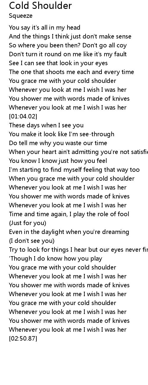 You grace me with your cold shoulder |