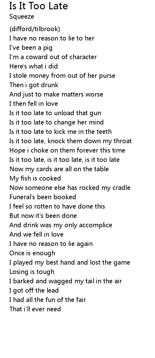 | Is it too late, is it too late, is it too late | |