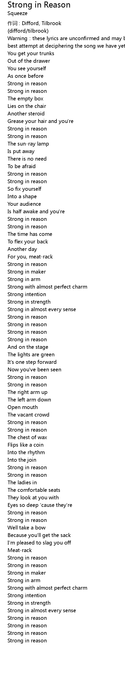| 歌曲 | Strong in Reason |