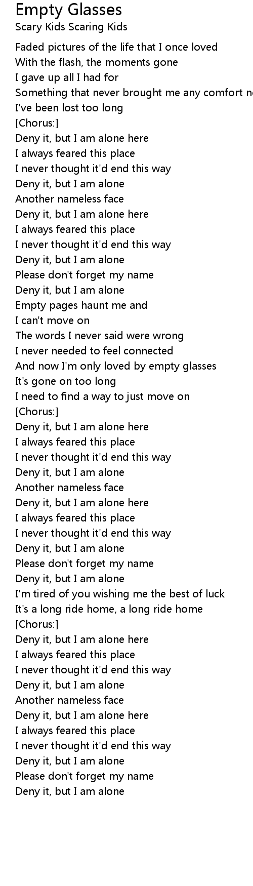 And now I'm only loved by empty glasses |