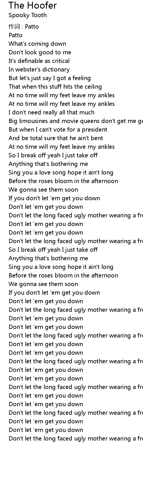 | Don' t let the long faced ugly mother wearing a frown get you down | |
