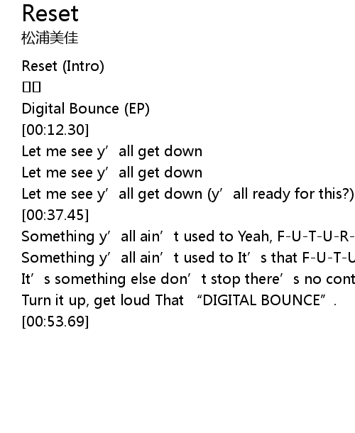 | [00:49.92] | Turn it up, get loud That " DIGITAL BOUNCE". |
