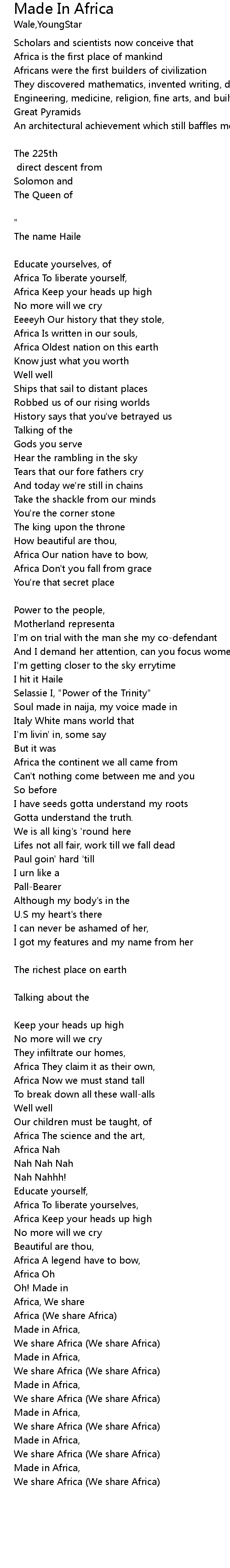 | Africa (We share Africa) | |