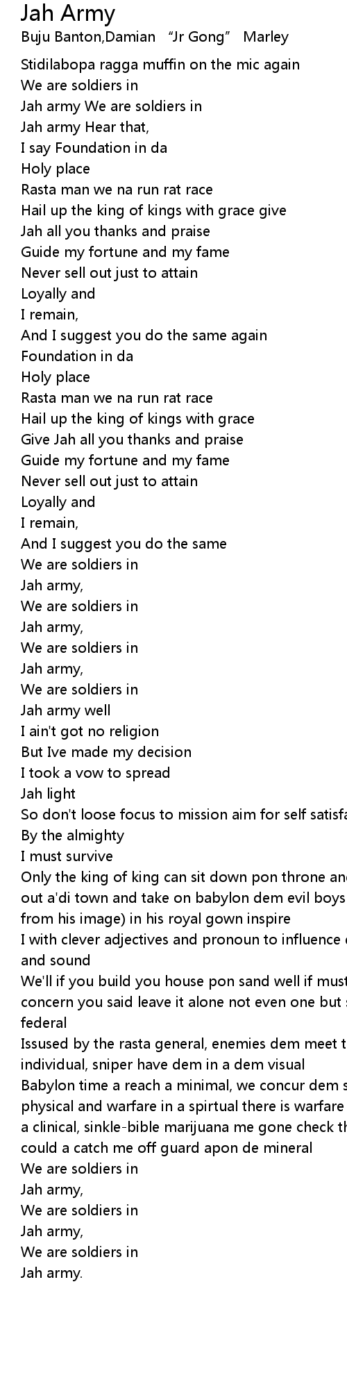 Jah army We are soldiers in |