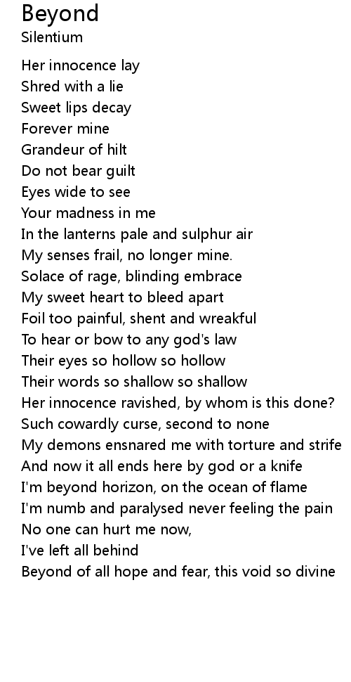 | Beyond of all hope and fear, this void so divine |