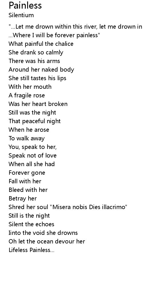 | "...Let me drown within this river, let me drown in this deep silence... ...Where I will be forever painless" | |