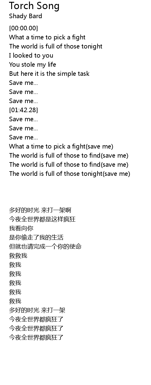 The world is full of those tonight(save me) |