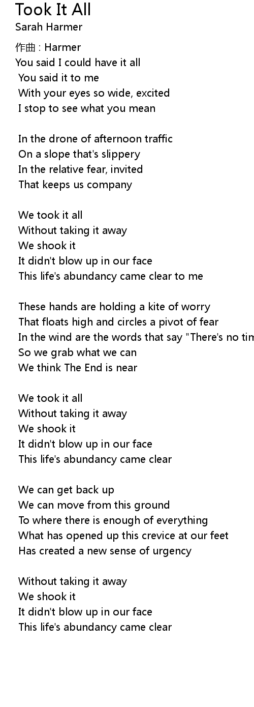 | 歌曲 | Took It All |
