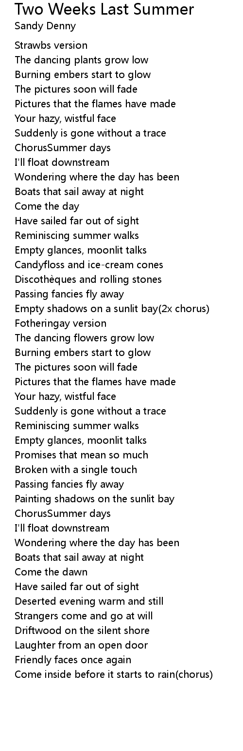 | 歌曲 | Two Weeks Last Summer |