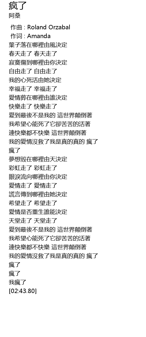 | [02:29.160] | 瘋了 |