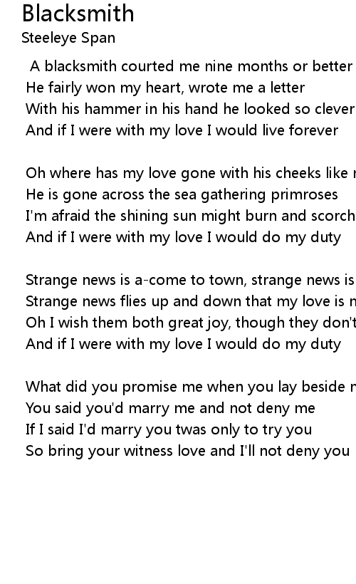 A blacksmith courted me nine months or better