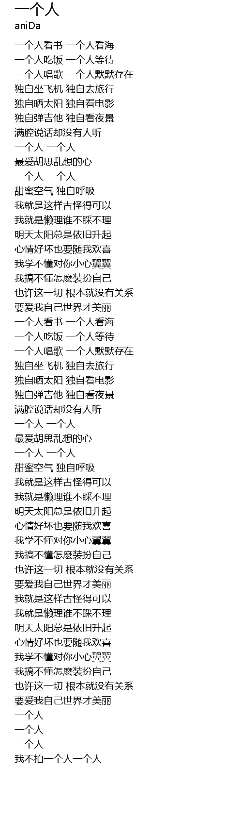 | [01:03.610] | 独自晒太阳 独自看电影 |