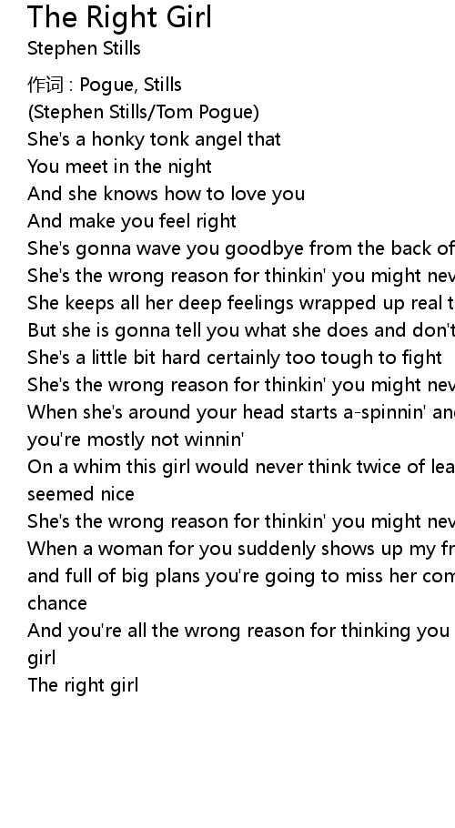 | She' s the wrong reason for thinkin' you might never never love the right girl | |