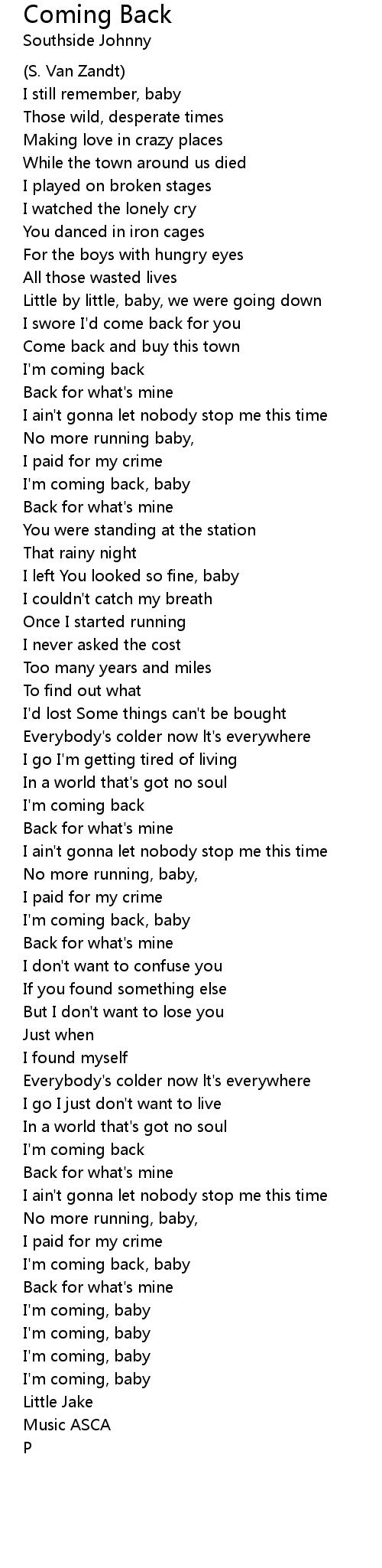 Coming Back 歌词