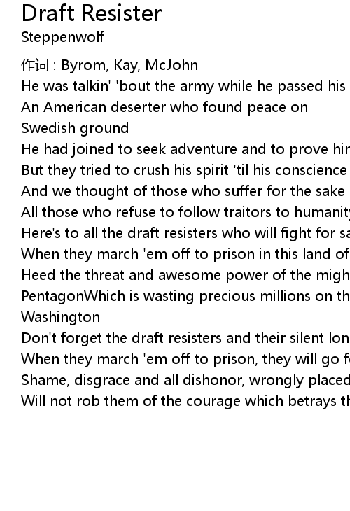 | Don' t forget the draft resisters and their silent lonely plea | |