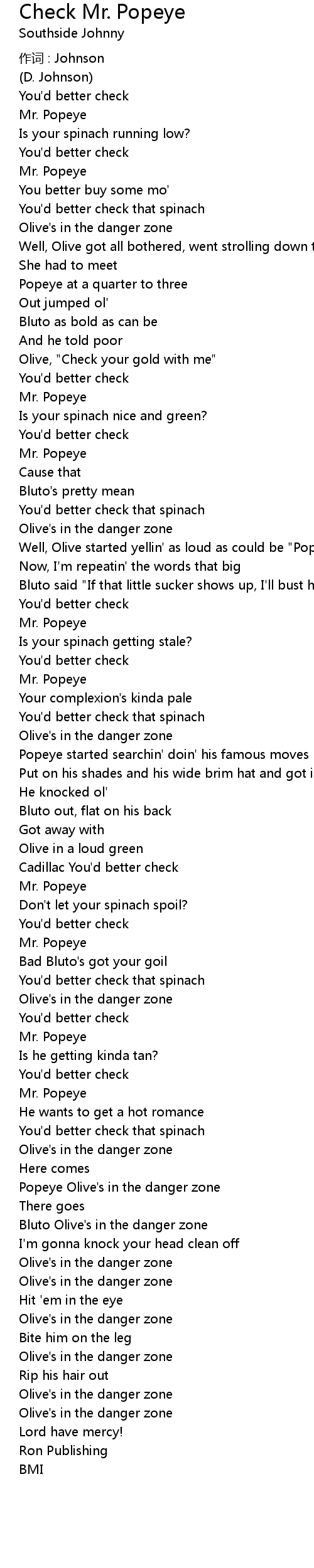 | 歌曲 | Check Mr. Popeye |