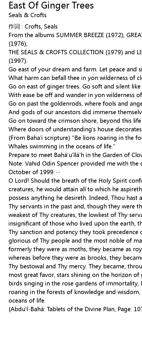 | Go on east of ginger trees. Go soft and silent like the breeze. | |