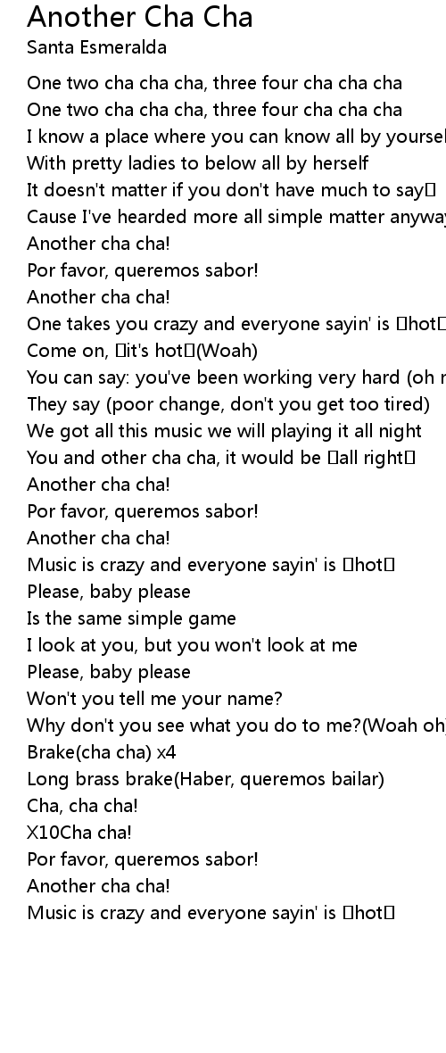 | One two cha cha cha, three four cha cha cha | |