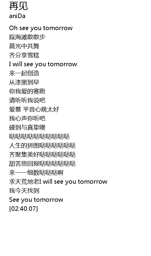 | [02:24.22] | 求天荒地老I will see you tomorrow |