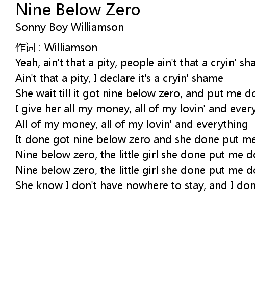| Nine below zero, the little girl she done put me down | |