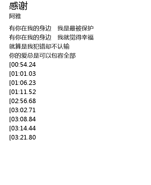 | [00:31.44] | 有你在我的身边 我是最被保护 |