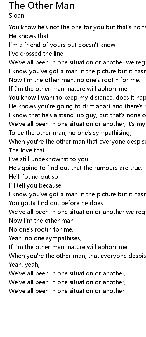 To be the other man, no one's sympathising, |