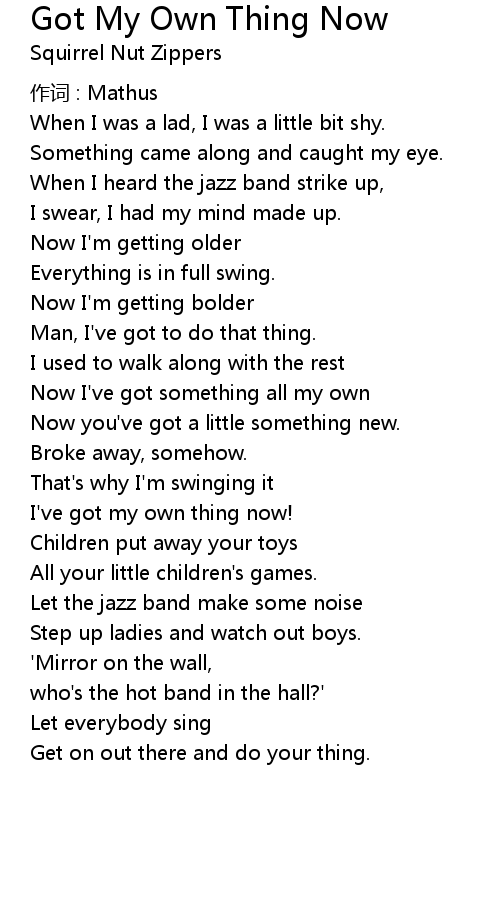 | 歌曲 | Got My Own Thing Now |