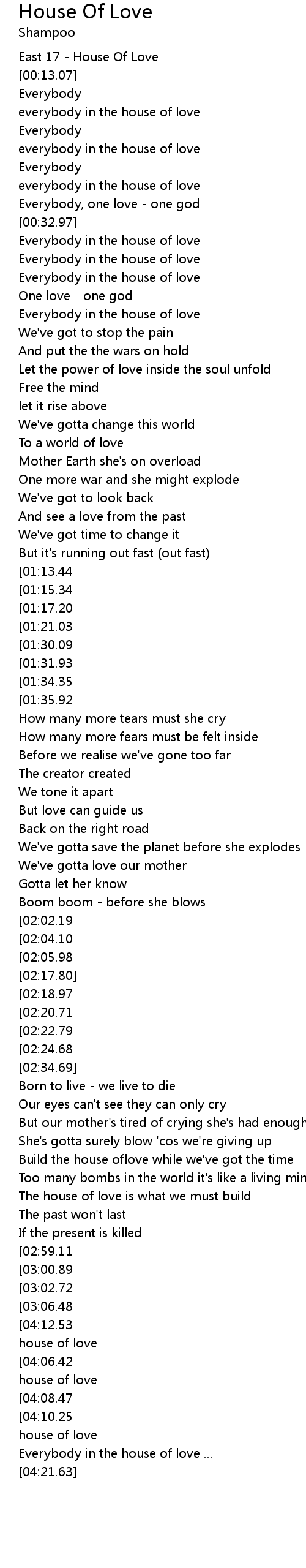 | [00:55.31] | Everybody in the house of love |
