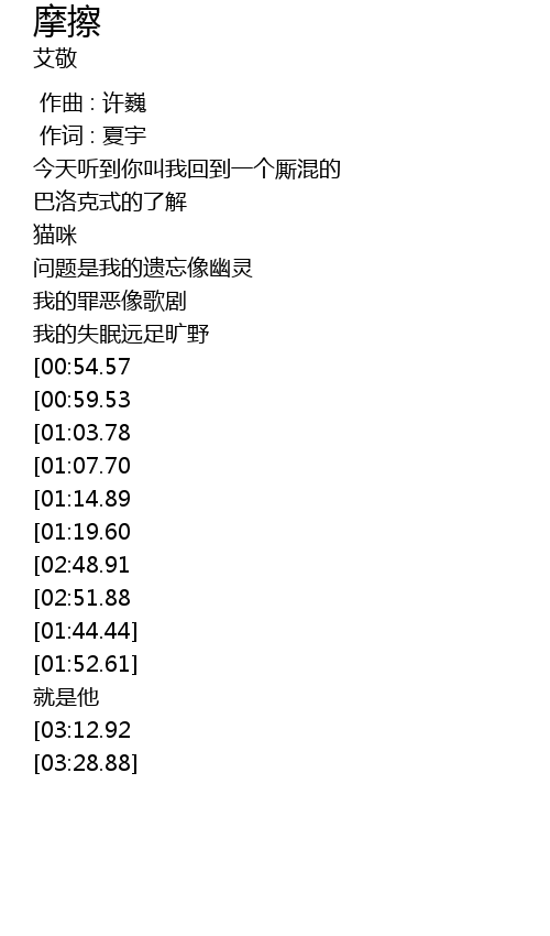 | [00:01.00] | zuo ci : xia yu |