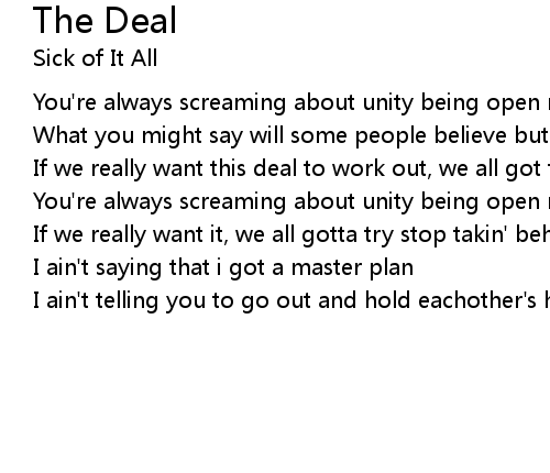 | I ain't telling you to go out and hold eachother's hands just saying that we're tired of hearing your shit and if you don't mean what you say then don't say it |