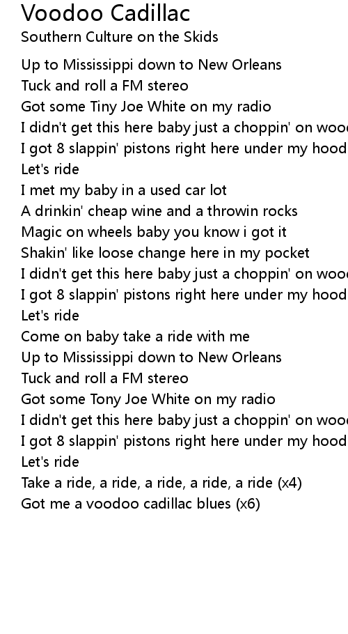 Got me a voodoo cadillac blues (x6) |