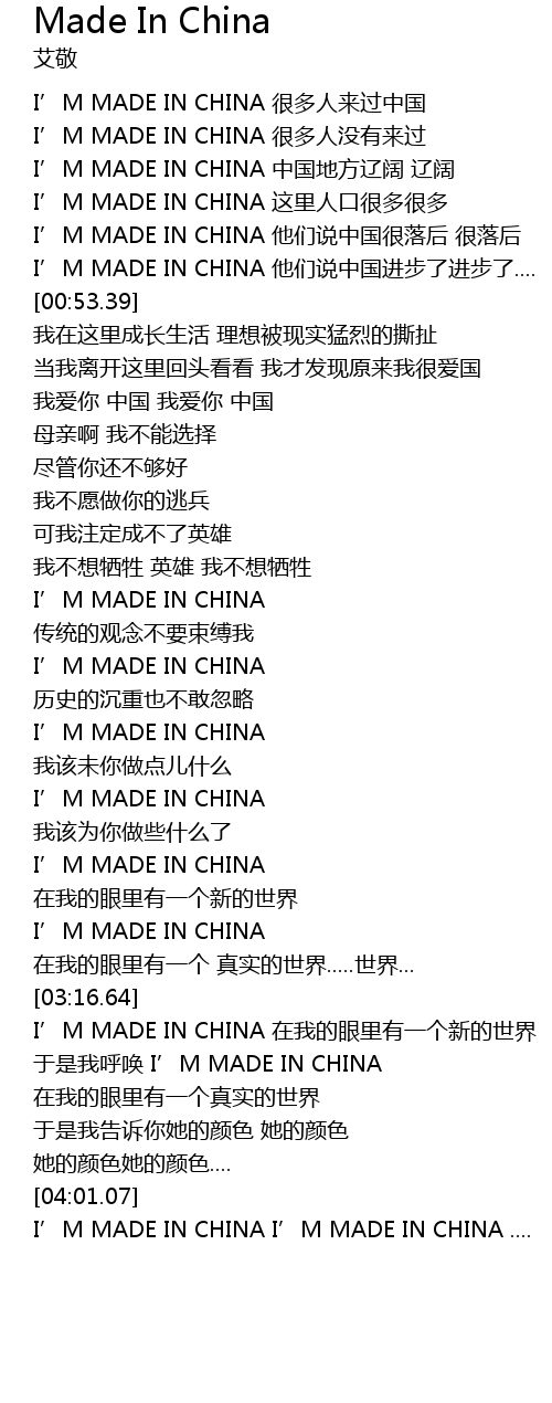 | [03:06.10] | I’M MADE IN CHINA |