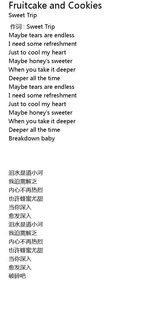 | 歌曲 | Fruitcake and Cookies |