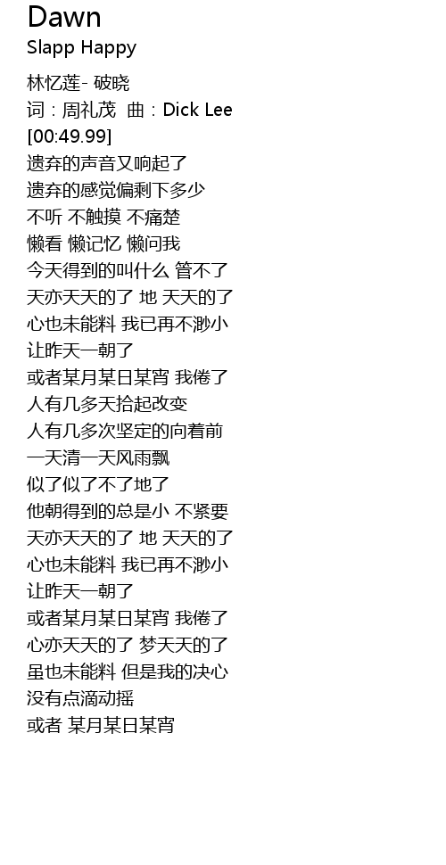| [00:00.00] | 林忆莲- 破晓 |