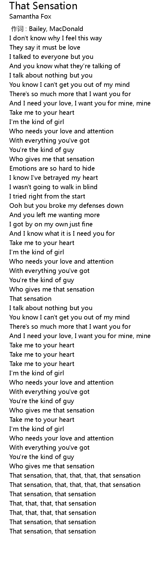 | [03:38.63] | That, that, that, that sensation |