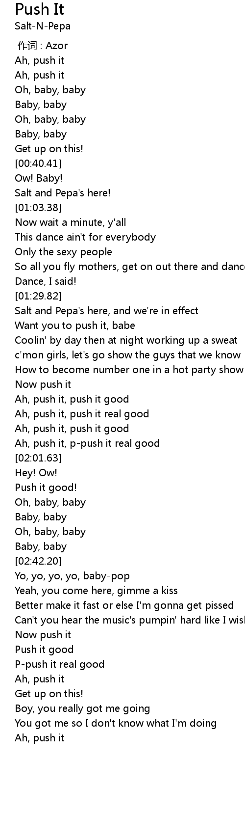 | [01:49.76] | Ah, push it, push it real good |